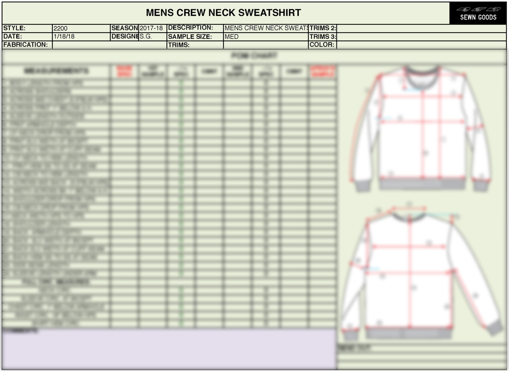 2200 Crew Neck Sweatshirt Tech Pack Template Xs 4xl Sewn Goods Pattern Makers Sample Makers Apparel Design And Development
